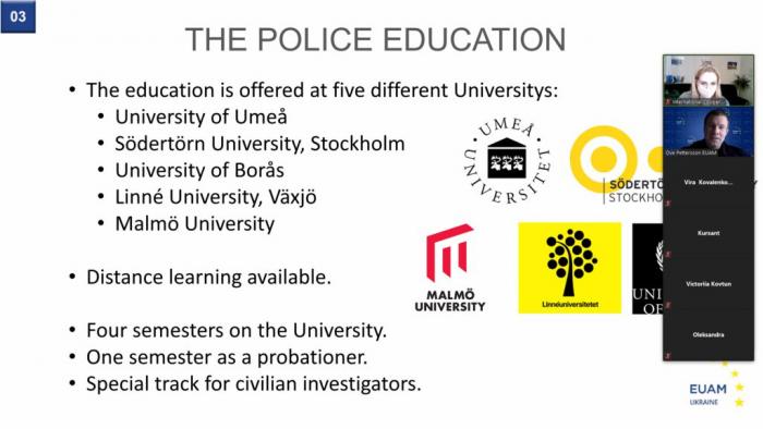 During his report, the speaker acquainted the participants with the general characteristics of his country - Sweden and the peculiarities of the organization and implementation of police activities in the state. The speaker paid special attention to the training of future police officers, Swedish higher education institutions that train police officers, the conditions for admission to universities, and further professional activity. In addition, the speaker described the main types of crimes and familiarized the participants with the statistics.