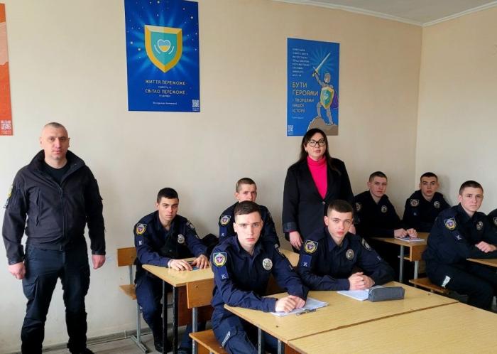 Курсантка ННІ №1 Ольга МЕЛЬНИЧУК провела профорієнтаційну зустріч з учнями випускних класів Тернопільської загальноосвітньої школи І-ІІІ ступенів №26 та розповіла про особливості вступу до ХНУВС, освітній процес, спеціальності, які можна опанувати, а також перспективи подальшого працевлаштування в органах системи МВС.