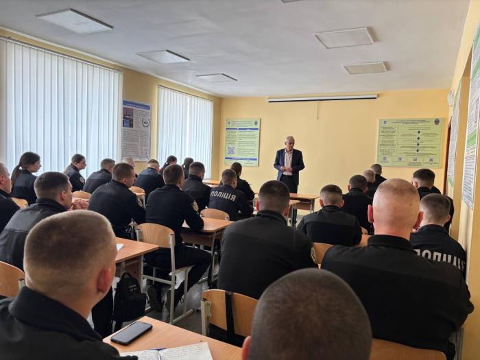 Професор кафедри гуманітарних дисциплін та українознавства, доктор філологічних наук, професор Ігор ЧОРНИЙ разом із інспектором сектору кадрового забезпечення Кам’янець-Подільського РУП ГУНП в Хмельницькій області Олексієм СІКОРОЮ провели заняття з дисципліни «Історія та культура України».