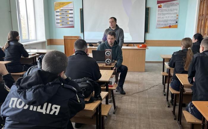 Оперуповноважений відділу кримінальної поліції Полтавського районного управління поліції ГУНП в Полтавській області лейтенант поліції Сергій Черкаський спільно з доценткою кафедри іноземних мов факультету № 4 ХНУВС Валентиною Кочиною провели бінарне заняття для курсантів 1 курсу факультету № 1 за темою «Шахрайство з таксі».