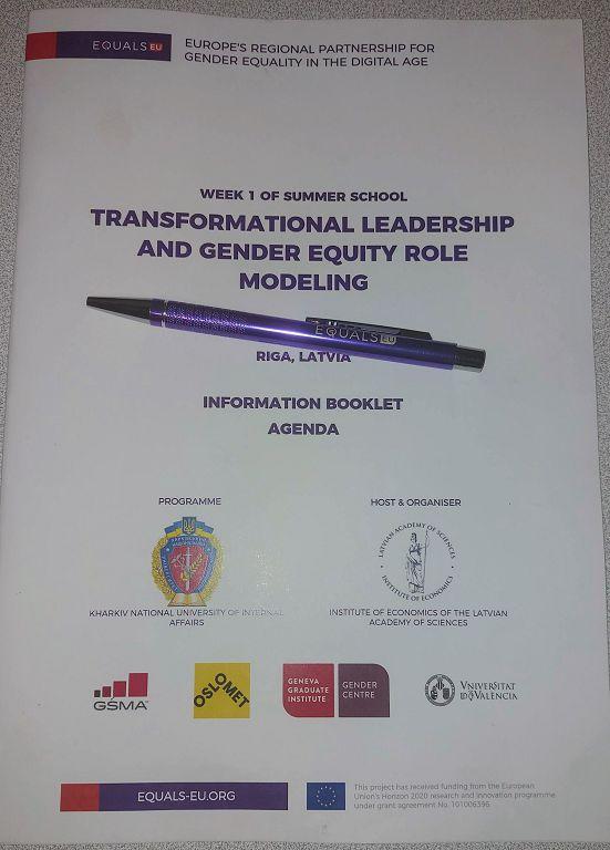 Одним із завдань проєкту програми Горизонт 2020 «Європейське регіональне партнерство для гендерної рівності в епоху цифрових технологій» є створення стійких та інклюзивних екосистем соціальних інновацій у місцевих громадах, містах Європи та в неєвропейських країнах на Глобальному Півдні та Півночі. Для цього переможці інноваційних хакатонів і таборів 22 країн світу отримали можливість проходження інкубаційної програми лідерства та участі у міжнародній літній школі трьох країн: Латвії, Швейцарської Конфедерації та Королівстві Іспанія. Представники ХНУВС розробили методичне забезпечення та програму першого тижня літньої школи «Моделювання трансформаційного лідерства та гендерної рівності». Помічниця ректора з ґендерних питань, кандидатка юридичних наук, доцентка Оксана Цукан провела воркшопи та презентації в перший тиждень міжнародної літньої школи. Теми занять були присвячені ключовим характеристикам ґендерних стереотипів і вирішенню проблеми недостатнього представництва жінок у прийнятті рішень.