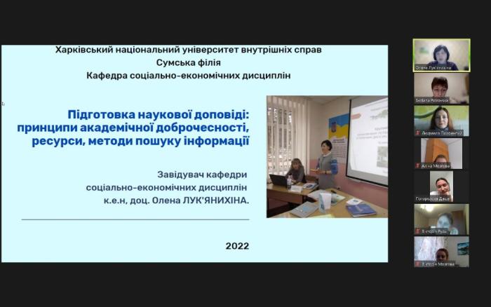 Відбулося чергове факультативне заняття Школи наукового лідерства Харківського національного університету внутрішніх справ на тему «Академічна доброчесність в освітньому процесі та науково-дослідній діяльності», яке провів завідувач науково-дослідної лабораторії з проблем досудового розслідування підполковник поліції Сергій Шатрава.