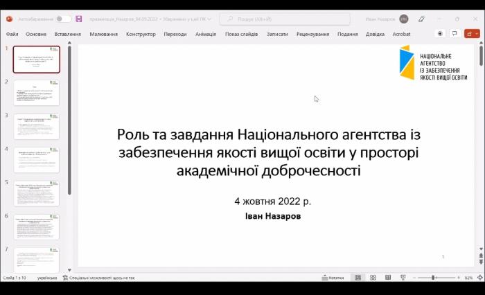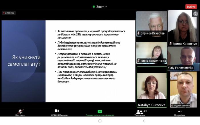 У Кременчуцькому льотному коледжі ХНУВС відповідальна за академічну доброчесність Марина Петченко спільно зі старшою науковою співробітницею відділу організації наукової діяльності та захисту інтелектуальної власності ХНУВС Катериною Маравською дистанційно провели науковий семінар на тему «Академічне письмо».