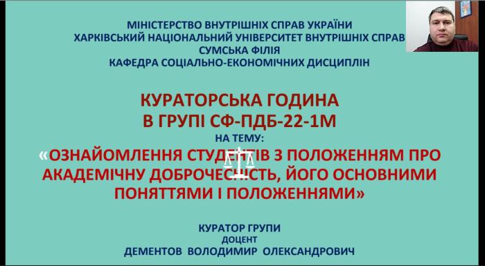 Професорка кафедри теорії та історії держави і права Харківського національного університету внутрішніх справ Юлія Загуменна разом із курсантами кураторської групи факультету №1 пройшла онлайн-курс «Академічна доброчесність в університеті», організованого Міжнародним фондом «Відродження».