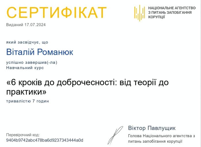 Старша викладачка кафедри правового забезпечення підприємницької діяльності та фінансової безпеки ННІ №5 Анна СУШКОВА успішно пройшла онлайн-курс «Академічна доброчесність», розроблений за підтримки Проєкту сприяння академічній доброчесності в Україні (SAIUP) та Американської Ради з міжнародної освіти.