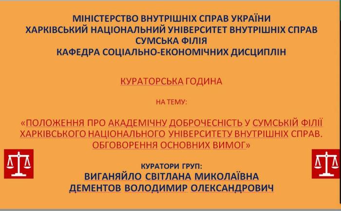 Доцентка кафедри кримінального права і кримінології ННІ №1, кандидатка юридичних наук, доцентка Ксенія ЮРТАЄВА провела кураторську годину для курсантів ННІ №1 на тему важливості дотримання академічної доброчесності здобувачами вищої освіти.