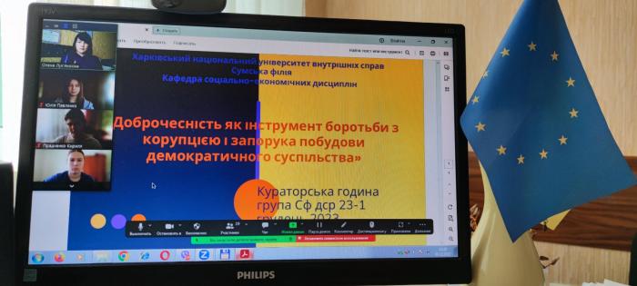 Кураторську годину на тему «Положення про академічну доброчесність у Сумській філії ХНУВС. Обговорення основних вимог» для здобувачів вищої освіти 2 курсу провели т.в.о. завідувача кафедри соціально-економічних дисциплін, доцентка Світлана Виганяйло та доцент цієї ж кафедри Володимир Дементов.