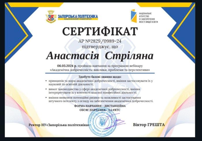 Його пройшли здобувачі вищої освіти та науково-педагогічні працівники ННІ №4. Отримання сертифікатів стало не лише підтвердженням знань, а й зобов'язанням дотримуватись етичних принципів у викладанні та навчанні для здобуття якісної освіти, написання наукових досліджень тощо.