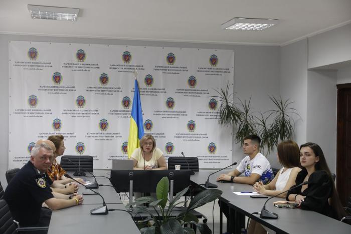 Психолог відділення психологічного забезпечення відділу кадрового забезпечення Вікторія Горєлова провела заняття з елементами тренінгу для здобувачів вищої освіти першого курсу навчально-наукового інституту № 5 (спеціальність 262 «Правоохоронна діяльність») за темою «Розвиток комунікативних вмінь та навичок вирішення конфліктів мирним шляхом».