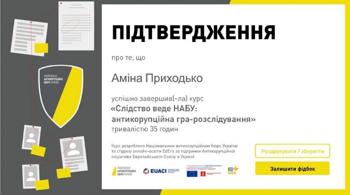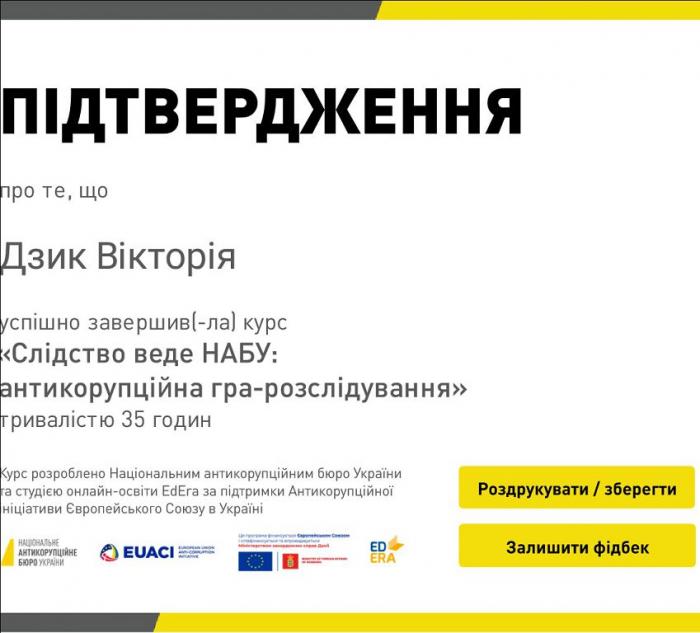 Професор кафедри теорії та історії держави і права факультету № 1 ХНУВС Дмитро Слинько успішно завершив базовий курс «Все про антикорупцію для публічних службовців». Він пройшов тестування та отримав відповідний сертифікат. Набуті компетентності будуть використані в освітньому процесі.