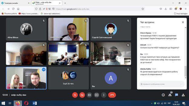 Учасники Школи наукового лідерства курсанти 1–3 курсів факультету № 1 Харківського національного університету внутрішніх справ взяли участь онлайн у робочій групі з проведення антикорупційних розслідувань та напрацювання пропозицій до влади щодо антикорупційної реформи.