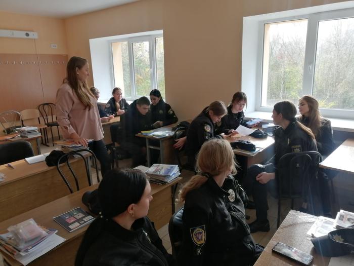 Доцентка кафедри теорії та історії держави і права факультету № 1 ХНУВС, кураторка Олена Юшкевич розповіла курсантам про основні положення Закону України «Про запобігання корупції». Окрему увагу вона приділила особливостям викриття корупції в секторі оборони і безпеки, зокрема розглянули основні терміни у цій сфері та етапи розгляду справ про викриття.