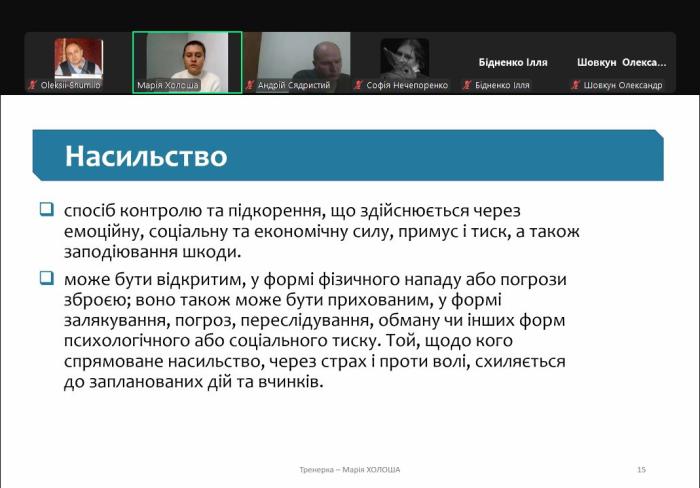 Участь у тренінгу проти гендерно зумовленого насильства Участь у тренінгу проти гендерно зумовленого насильства