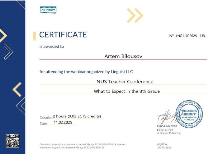 Старша викладачка кафедри мовної підготовки Лариса САЗАНОВА долучилася до Міжнародної онлайн-конференції для викладачів англійської мови від компаній Linguist LLC та National Geographic Learning.