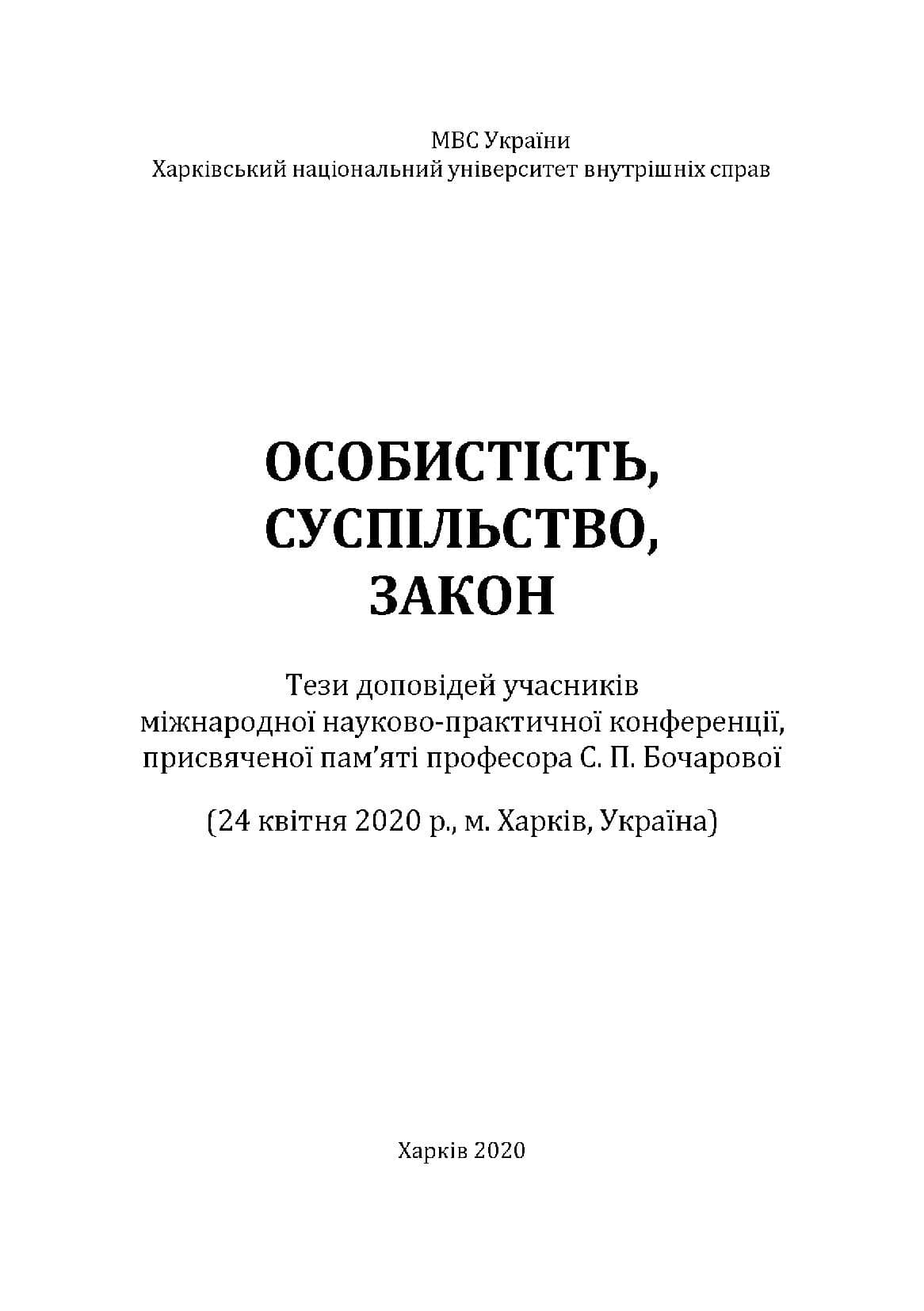 Міжнародна науково-практична конференція «Особистість, суспільство, закон», присвячена пам’яті професора С.П. Бочарової (24 квітня 2020 року) відбудеться у заочно-дистанційній формі (відповідно рішення Кабінету Міністрів України від 25.03.2020 про продовження карантинних заходів до 24 квітня 2020 року).