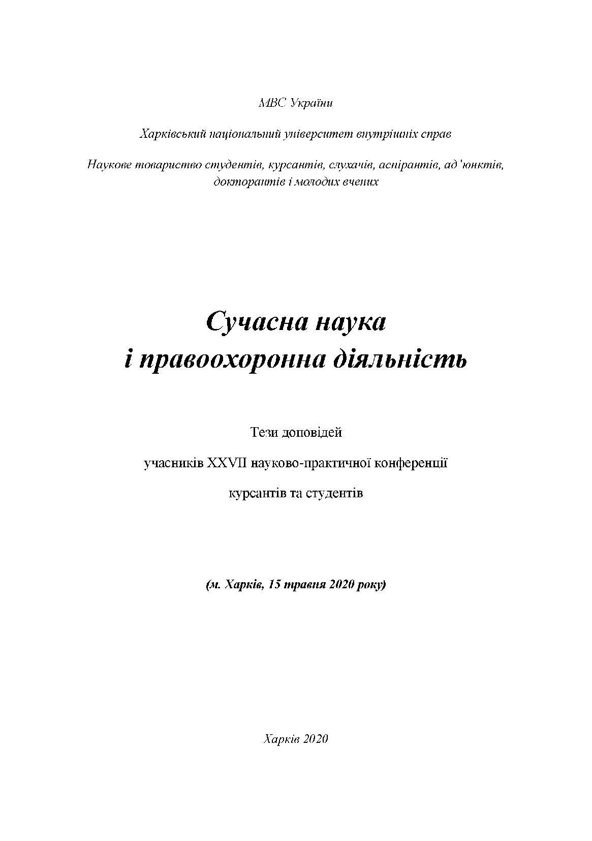 Категорії: 262 Правоохоронна діяльність, Науково-практична