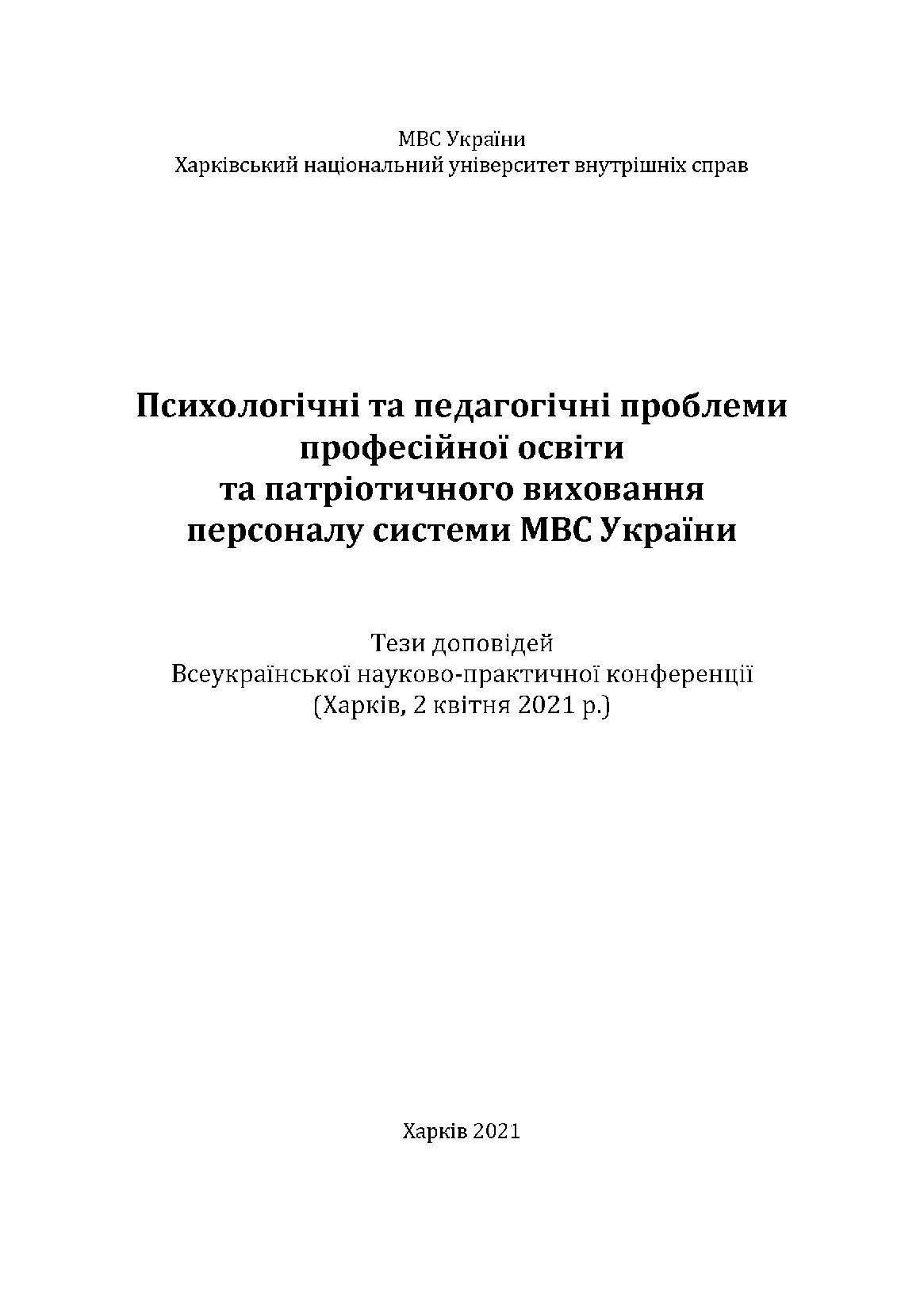 Психологічні та педагогічні проблеми професійної освіти та патріотичного виховання персоналу системи МВС України