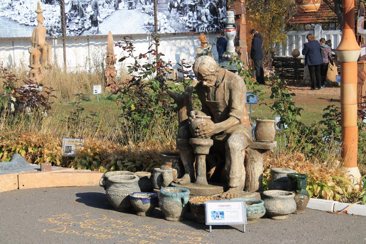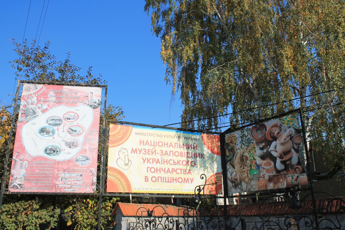Зовсім недалеко від Полтави є маленьке селище Опішня, більшість жителів якого займається гончарством. В цьому селищі знаходиться абсолютно чарівний музей-заповідник гончарства. Там зібрані різні тарілочки, глечики, миски, але, поклавши руку на серце, не за цим сюди приїжджають.Те, що вражає погляди і притягує увагу – це дивовижна виставка садово-паркових скульптур під відкритим небом.На соковитою зеленій траві стоять роботи різних майстрів – які спеціально робилися для виставки, які привезені після перемоги на конкурсах, деякі, як же без цього, взагалі незрозуміло для чого робилися, тому що не осягнути нам думки творця і мислителя, але від цього навіть цікавіше.Є абсолютно приголомшливі речі, просто розуму не зрозуміло, як все це робилося, як треба відчувати глину, щоб створити людину, щоб виліпити щось з нічого. А є, і чимало, роботи, які самі собою говорять, що гончарство – справа чоловіча, справа, яка потребує натхнення, і, можливо навіть, що потребує Музи.І ми не залишилися без подарунків. В кінці екскурсії всі отримали керамічні свистульки – було весело як в дитинстві.