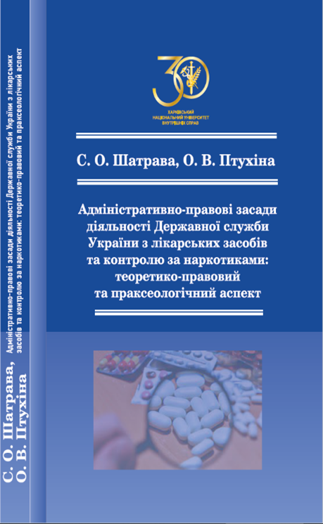 - Шатрава С.О., Птухіна О.В. Адміністративно-правові засади діяльності Державної служби України з лікарських засобів та контролю за наркотиками: теоретико-правовий та праксеологічний аспект : монографія. Харків : Факт, 2024. 280 с.