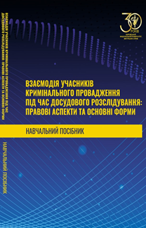- Взаємодія учасників кримінального провадження під час досудового розслідування: правові аспекти та основні форми : навч. посіб. / кол. автор. Тарасенко О.С., Герасимчук Р.В., Шевчишен А.В., Абламський С.Є., Шатрава С.О. та ін.; за заг. ред. В.В. Сокуренка. Вид. 3-тє, допов. І перероб. Харків : ХНУВС, 2024. 208 с.
