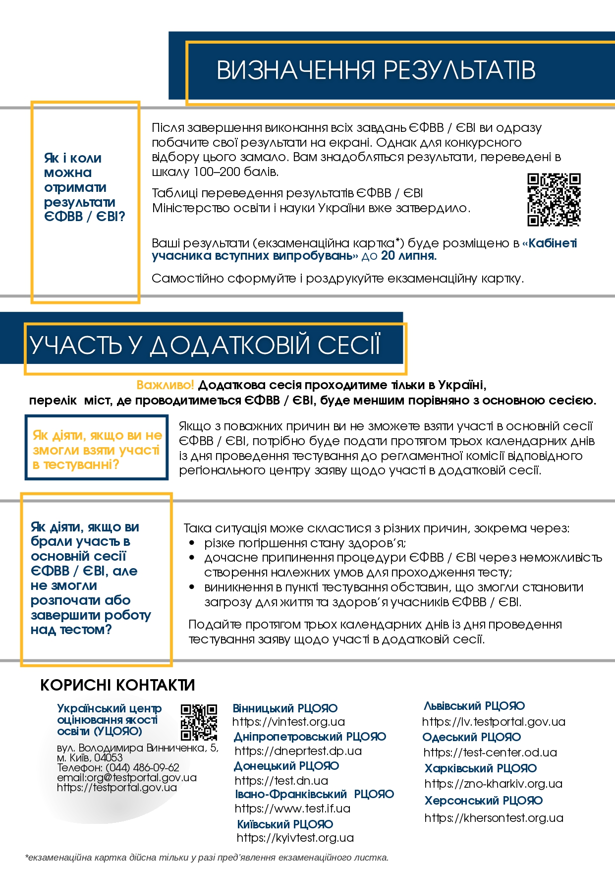 За додатковою інформацією щодо проходження процедури реєстрації на ЄВІ звертайтесь до представників приймальної комісії за тел.: