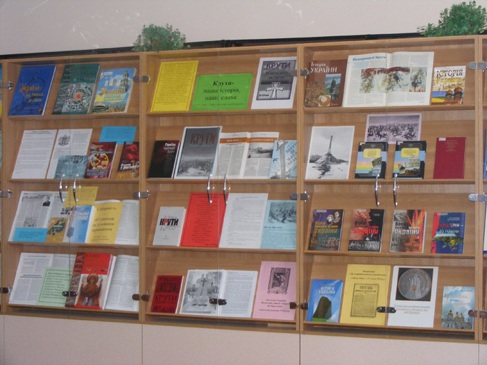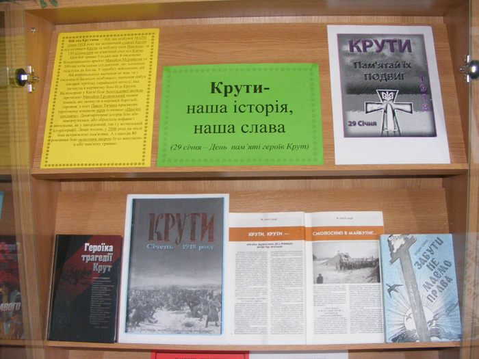 Бібліотека університету організувала розгорнуту книжково-ілюстративну експозицію «Крути – наша історія, наша слава», яка розкриває події бою, що відбувся 29 січня 1918 року на залізничній станції Крути в 130 кілометрах від Києва.