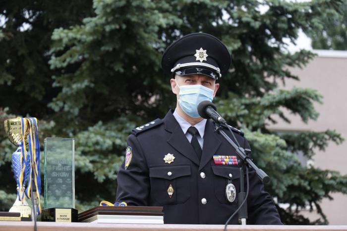 Під час ранкового шикування особового складу Харківського національного університету внутрішніх справ було відзначено спортсменів університету, які отримали перемогу та стали призерами змагань з різних видів спорту. Нагороди – дипломи, кубки, медалі – вручив спортсменам перший проректор університету полковник поліції Дмитро Швець. Він привітав юнаків і дівчат зі спортивними досягненнями й побажав нових успіхів і здобутків у спорті та навчанні.
