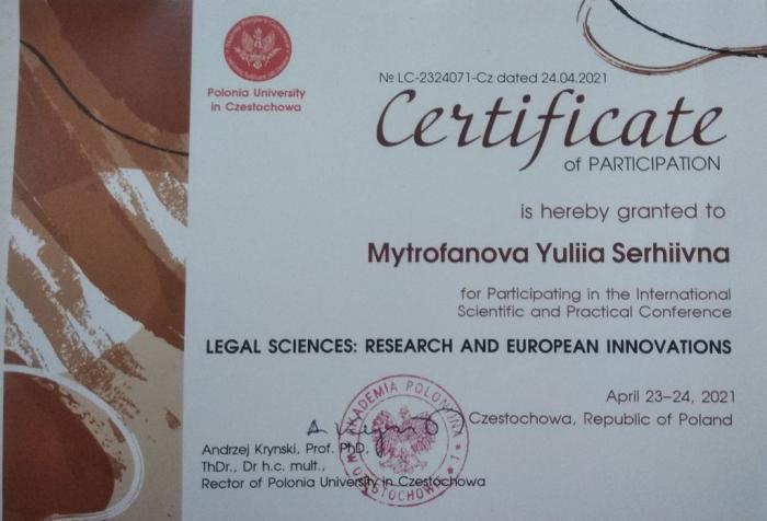 Конференція відбулася у м. Ченстохова (Республіка Польща), учасники якої пройшли підвищення кваліфікації обсягом 15 годин (0,5 кредити ECTS) та отримали сертифікати.