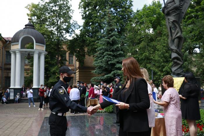 Від імені ректора університету генерала поліції третього рангу Валерія Сокуренка випускників ліцею привітав проректор полковник поліції Сергій Бортник, який зазначив: «Час вимагає постійної наполегливої праці та самовдосконалення, адже в очах кожного громадянина ви повинні бути зразком в усьому. Роки навчання в юридичному ліцеї – це перші кроки на шляху до майбутньої професії». Сергій Бортник побажав юнакам і дівчатам упевненості та віри у свої сили, сміливості на шляху до здійснення мрій, бути справжніми патріотами України.