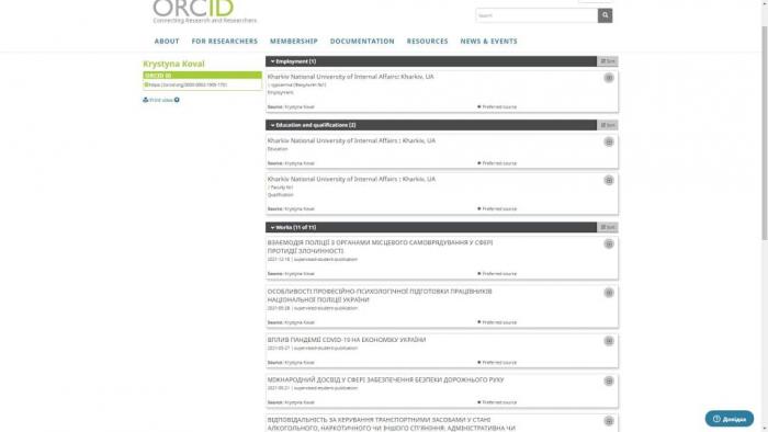 Учасники Школи наукового лідерства факультету № 1 Харківського національного університету внутрішніх справ активно опановують міжнародний реєстр вчених Open Researcher and Contributor ID (ORCID). Наразі всі учасники Школи мають власні профілі у зазначеному ідентифікаторі, де постійно ведуть облік власних наукових публікацій.