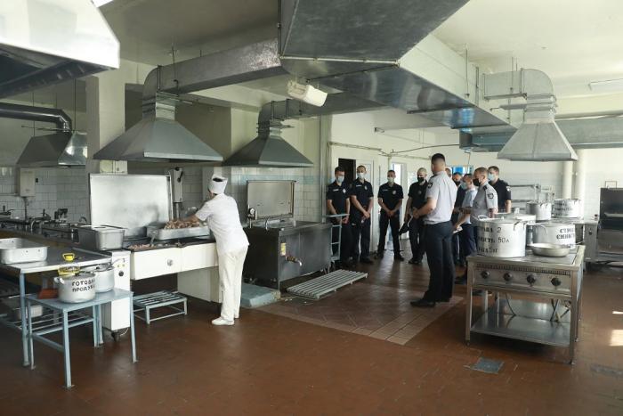 На базі курсантської їдальні № 1 було проведено контрольно-показове приготування обіду. Комісія у складі представників факультетів і курсантського самоврядування, офіцерів курсової ланки ознайомилася з повним циклом технологічного процесу приготування їжі, починаючи з оцінки якості сирих продуктів, отриманих зі складу. Вони побачили, як проводиться первинна обробка продуктів, приготування напівфабрикатів і доведення їх до готовності, роздача їжі на лінії самообслуговування. Також була проведена коротка екскурсія виробничими цехами їдальні, в тому числі пекарні, де випікаються хлібобулочні вироби для курсантів.