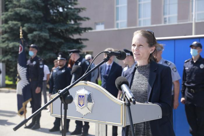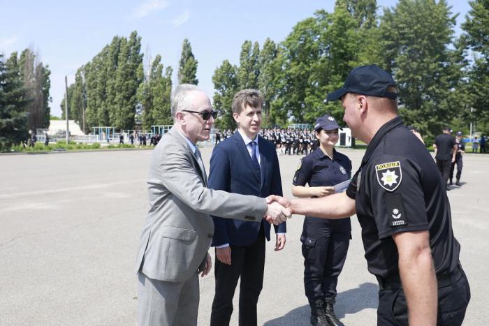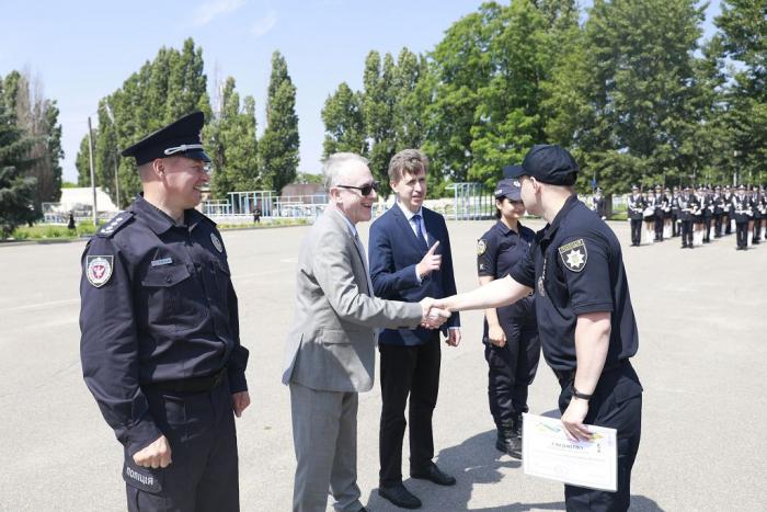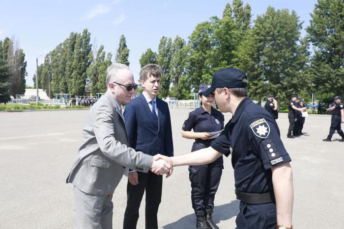 Ректор Харківського національного університету внутрішніх справ генерал поліції третього рангу Валерій Сокуренко підкреслив: «Два з половиною місяці ви навчалися в Харківському національному університеті внутрішніх справ. Навчання пройшли кращі з кращих. Я вдячний вам, що ви стали прикладом для перемінного складу, вдячний нашим іноземним партнерам, тренерам, які передали свої вміння, навички й методики, що відкривають нам доступ до міжнародних стандартів. Будьте справжніми, щоб громадяни відчували себе у безпеці й захищеними у будь-яку пору доби й у будь-якому місці, щоб ви надавали їм якісний сервіс, якісні поліцейські послуги. Цей проект є продовженням поліцейської реформи. Не зганьбіть себе, будьте послідовними, будьте вимогливими до себе, до своїх колег, і все у нас вийде. Служіть так, щоб вас поважали люди і захищав Господь Бог! Слава Україні!».