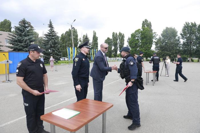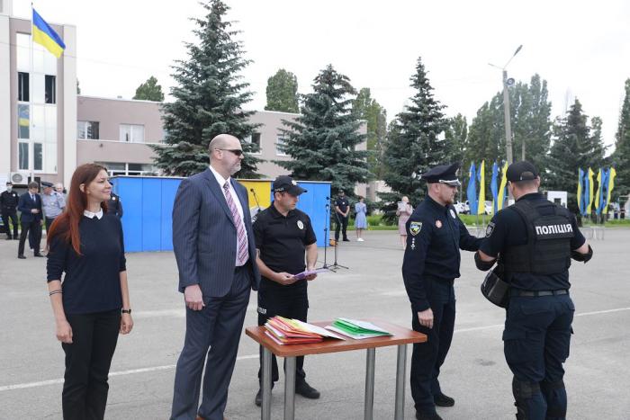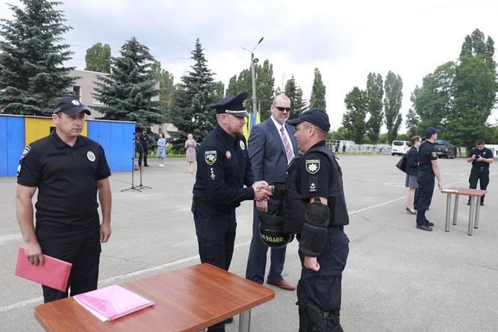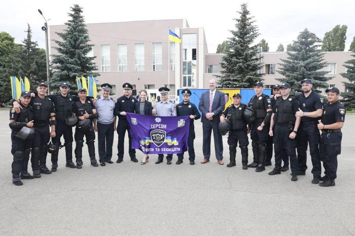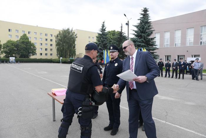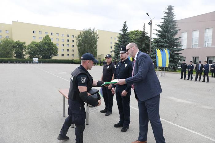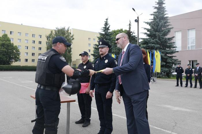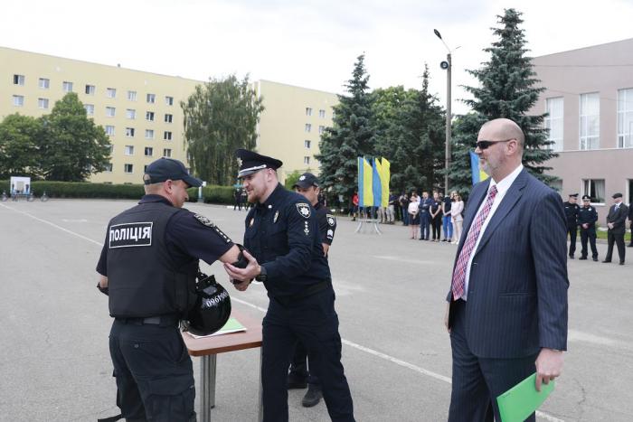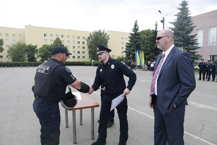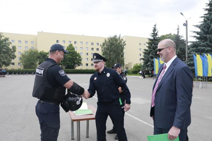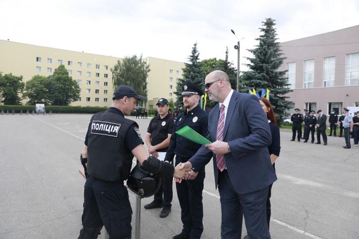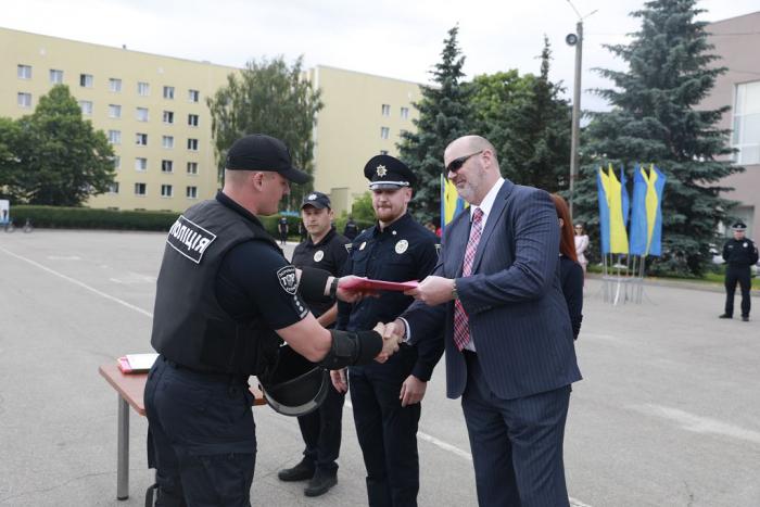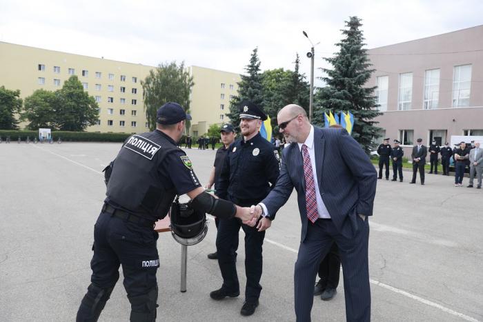 «Я бачу прекрасну групу професіоналів. Ви сильні, безстрашні, сміливі. – підкреслив директор Регіонального програмного офісу ICITAP в Україні Майкл Холл. – Я був свідком того, як з вами проводили навчання. Я бачив усі ті хитрі ситуації, які підготували для вас інструктори, і які ставили перед вами дуже багато викликів. Мені було приємно бачити, як ви успішно долали усі перешкоди як одна команда. Ви прекрасно діяли усі разом: ТОР, велопатруль, кінний підрозділ, демонструючи усі свої тактичні навички, згуртованість і злагодженість у роботі. Продовжуйте бути такою злагодженою командою, дбайте один про одного, служіть вашим громадам, пишаючись цією службою, і, безумовно, демонструйте співчуття. Завжди будьте на передовій позитивних змін! Вітаю вас із вашими досягненнями, нехай Господь вас благословить! Нехай Господь зробить так, щоб ви завжди були у безпеці, і нехай Господь благословить Україну!».