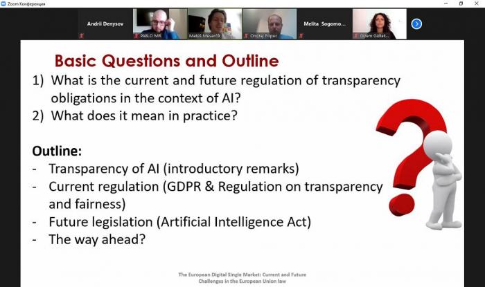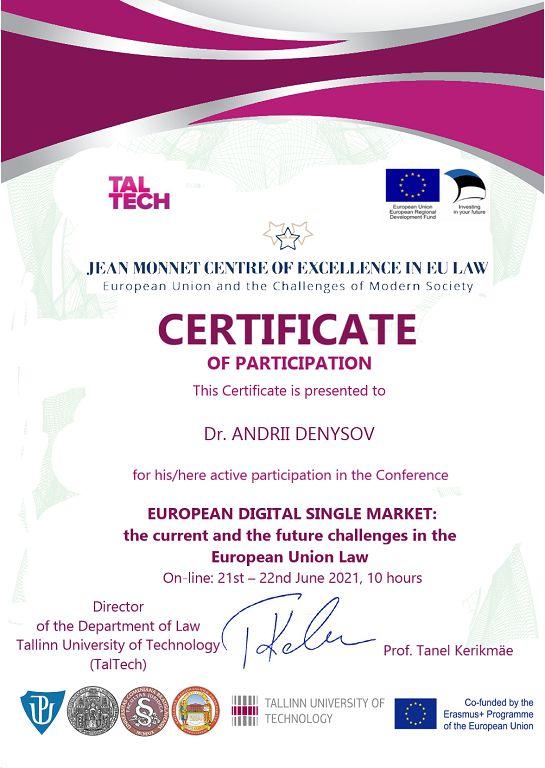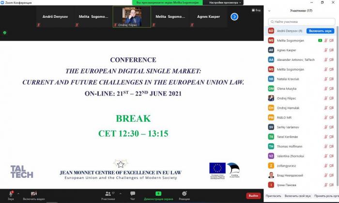Науковці факультету № 6 Юрій Жорнокуй, Ірина Панова, Олексій Шуміло, Валентина Жорнокуй та Андрій Денисов взяли участь в онлайн-конференції «Єдиний цифровий ринок Європи: сучасні та майбутні виклики законодавству Європейського Союзу», яку проводив юридичний факультет Таллінського технологічного університету.