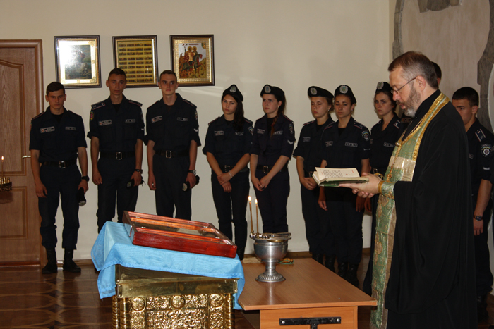 Настоятель Миколаївського храму м. Харкова, голова єпархіального відділу по зв'язках з військовими установами та формуваннями, протоієрей Володимир Катречко, який також щосереди проводить службу в університетському Храмі, справив водосвятний молебен. У своїй короткій проповіді священик звернувся зі словами вдячності за добрі діла на славу Святої Церкви та принесену в дар ікону.