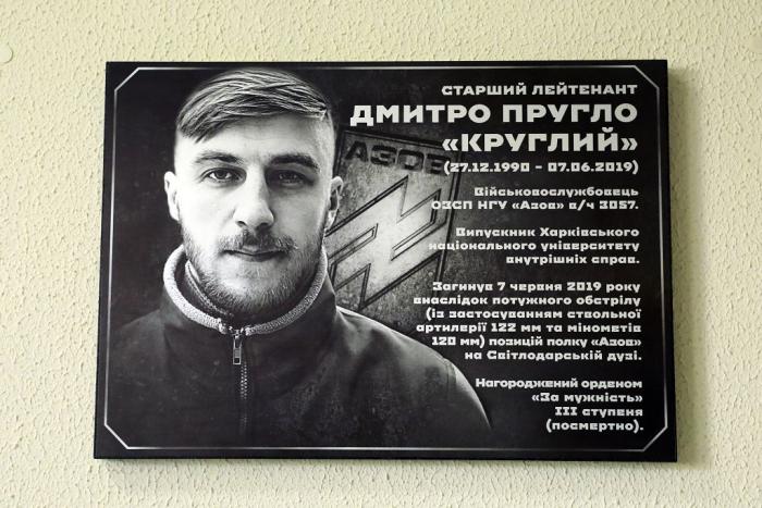 У Харківському національному університеті внутрішніх справ відбулися урочисті заходи з нагоди відкриття меморіальної дошки на честь пам’яті загиблого на сході України випускника університету, заступника командира роти полку Національної гвардії України «Азов», старшого лейтенанта Дмитра Пругла.