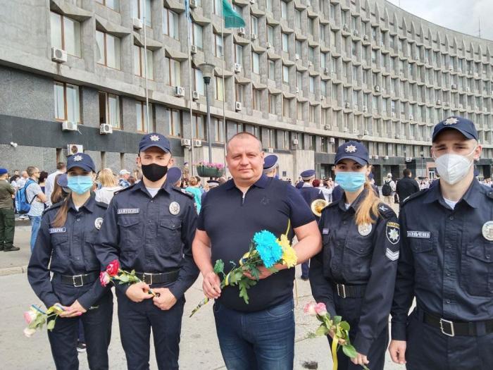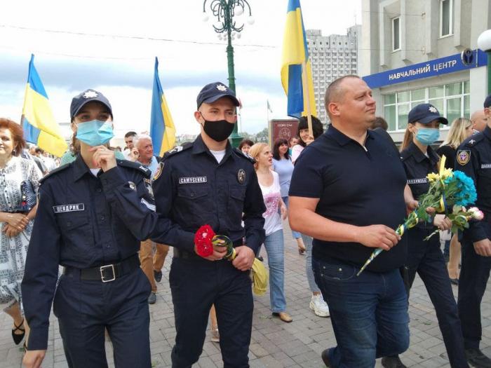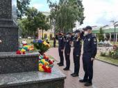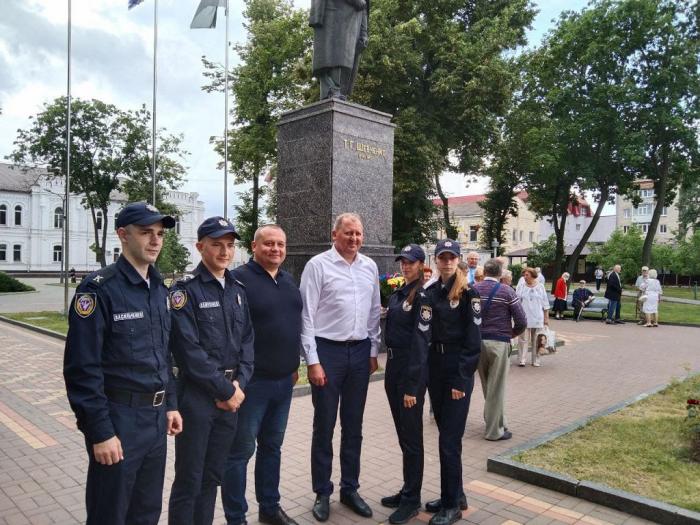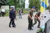 Директор Сумської філії Харківського національного університету внутрішніх справ Сергій Лукаш разом із курсантами взяв участь в урочистих заходах з нагоди 25-ї річниці Конституції України: піднятті Державного Прапору України, покладанні квітів до могил загиблих в зоні АТО/ООС, до пам’ятників Героям Майдану та Тарасові Шевченку.
