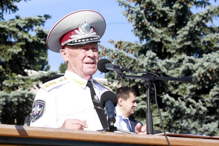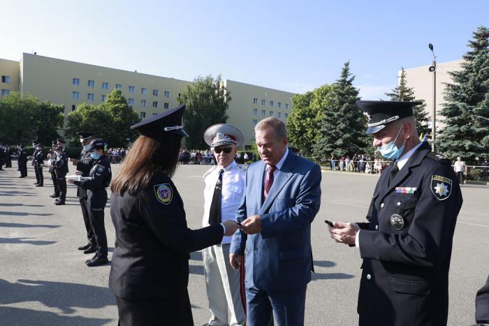 Перший ректор університету (1992–2003, 2010–2012 рр.), академік Національної академії правових наук України, доктор юридичних наук, професор, Заслужений юрист України, генерал-полковник міліції Олександр Бандурка наголосив: «Панове офіцери, у вашому житті відбулася знаменна подія – кілька хвилин тому ви отримали перші офіцерські погони. З лейтенантів, старших лейтенантів розпочинається ваш шлях у велику службу. В системі МВС є й інші звання, і я кожному з вас бажаю, щоб ви дослужилися до тих погон, які я ношу на своїх плечах. Шлях до великих звань нелегкий, часом тернистий, але дорогу долає той, хто зробив перший крок, і хто по ній наполегливо йде далі. Ви стали офіцерами поліції. Це висока честь, але ще більша відповідальність. Завжди пам’ятайте, що девізом університету є «Знання. Закон. Честь». Дотримуйтеся його, звіряйте всі свої дії – і службові, й особисті – із Законом, і у вас буде все в порядку. Бажаю вам добра, здоров’я, миру, злагоди, успіхів і звершення усіх тих планів і бажань, які ви ставите перед собою».