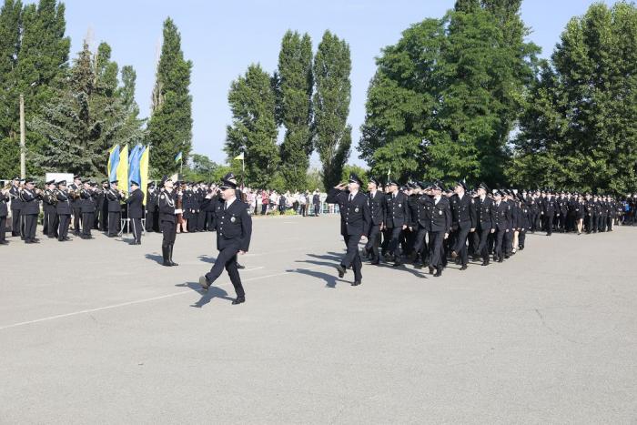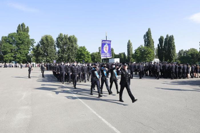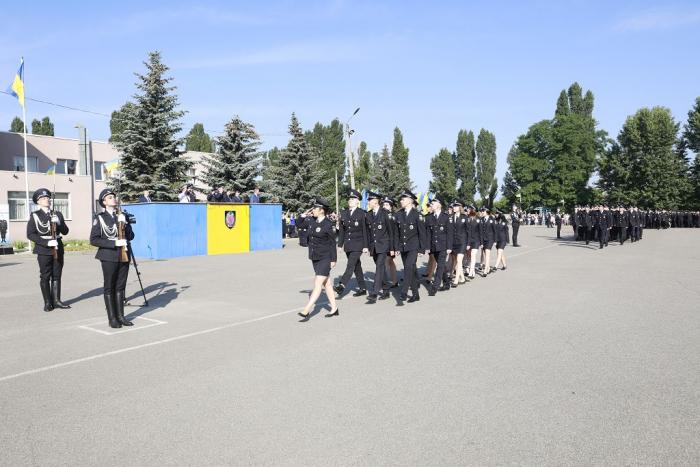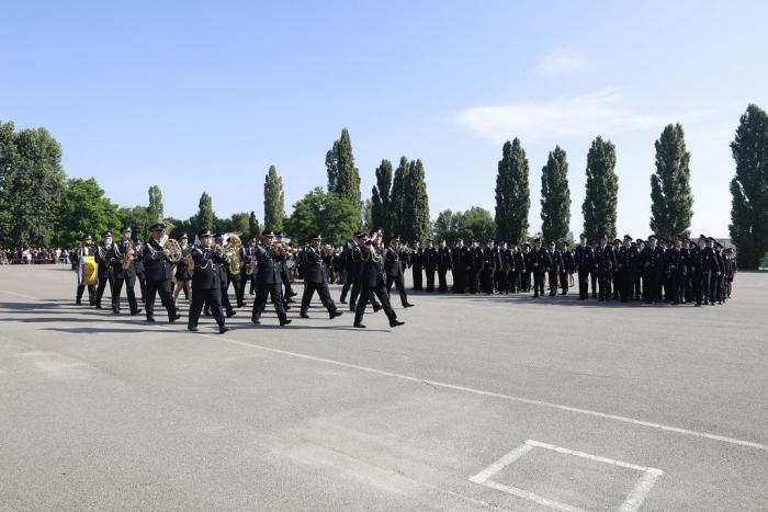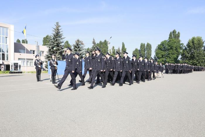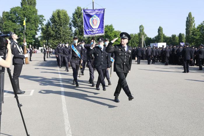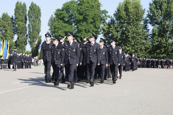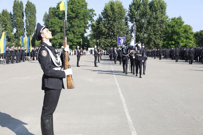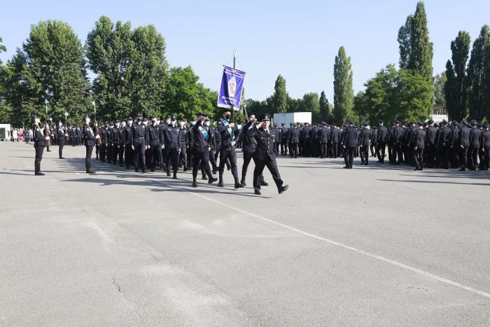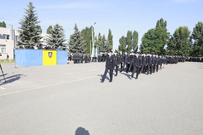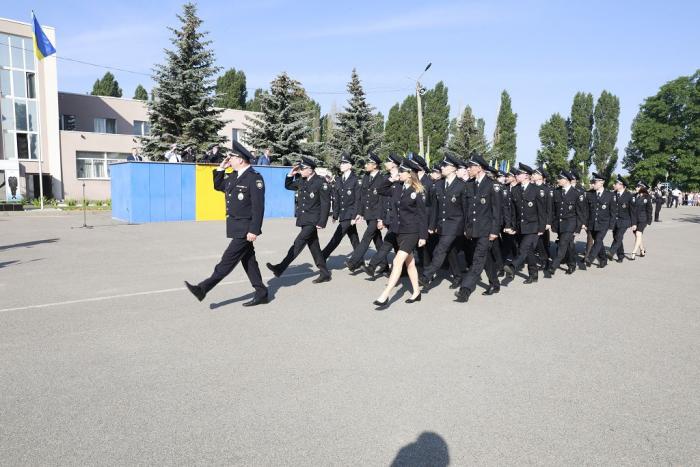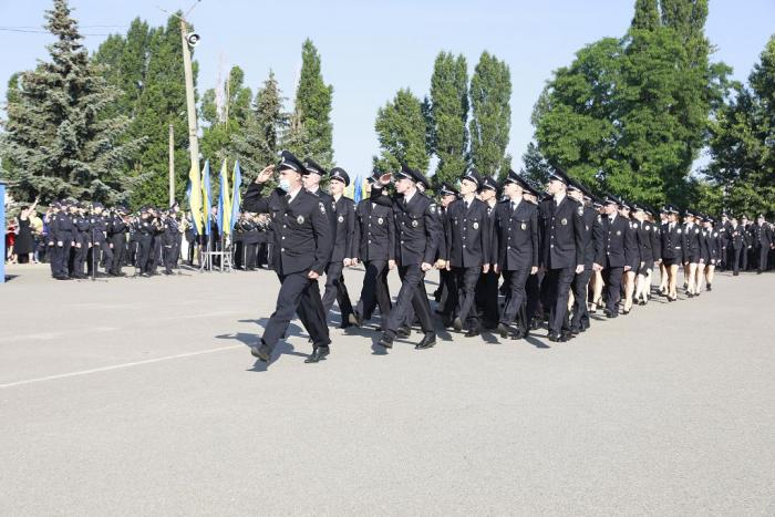 На завершення заходу прозвучала вокальна композиція «Погони» у виконанні представників художньої самодіяльності університету. Урочистим маршем молоді офіцери Національної поліції пройшли університетським плацом.