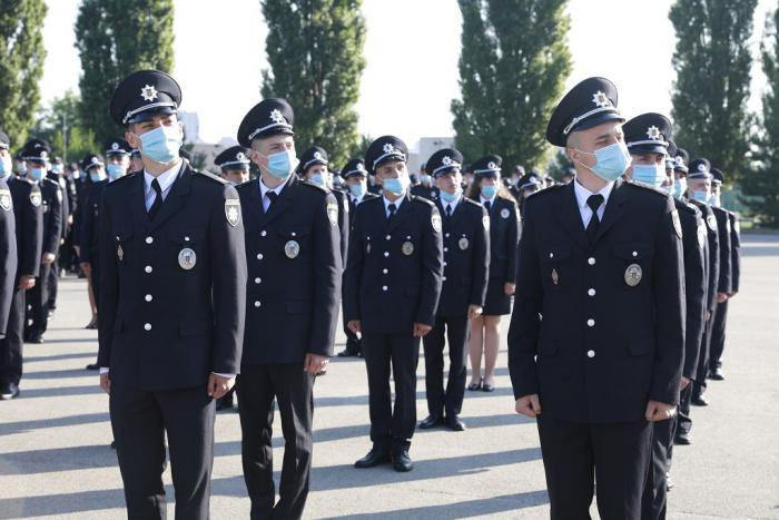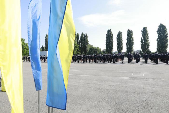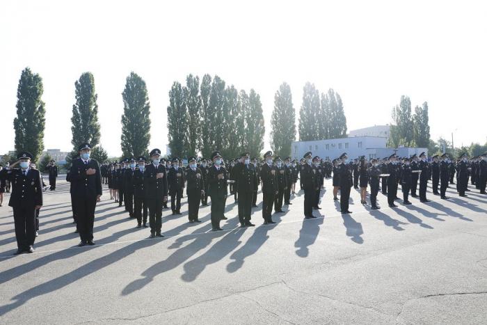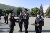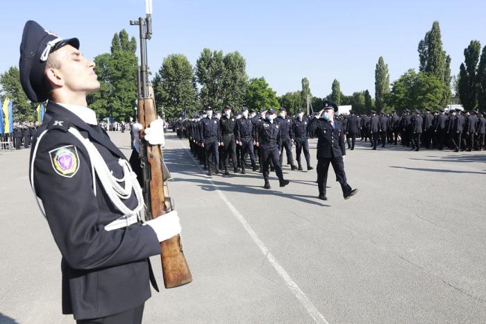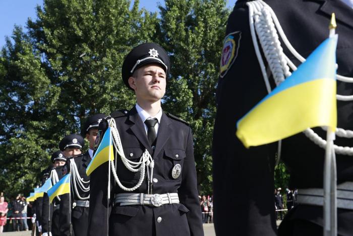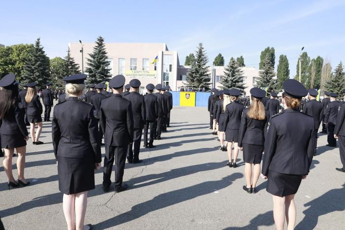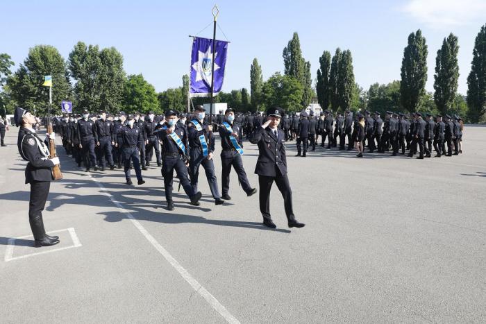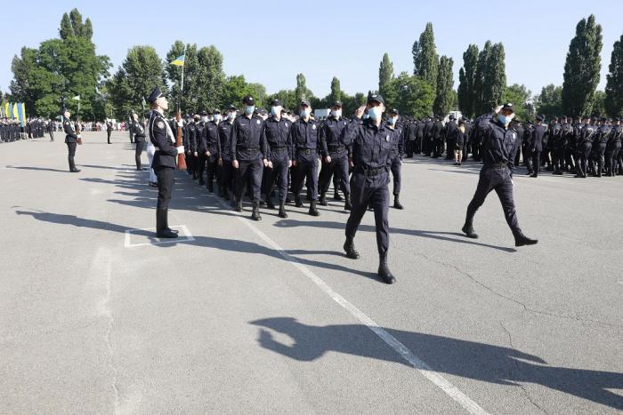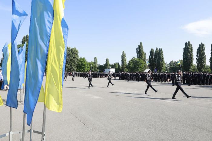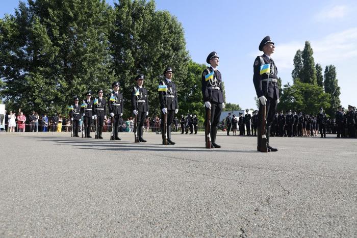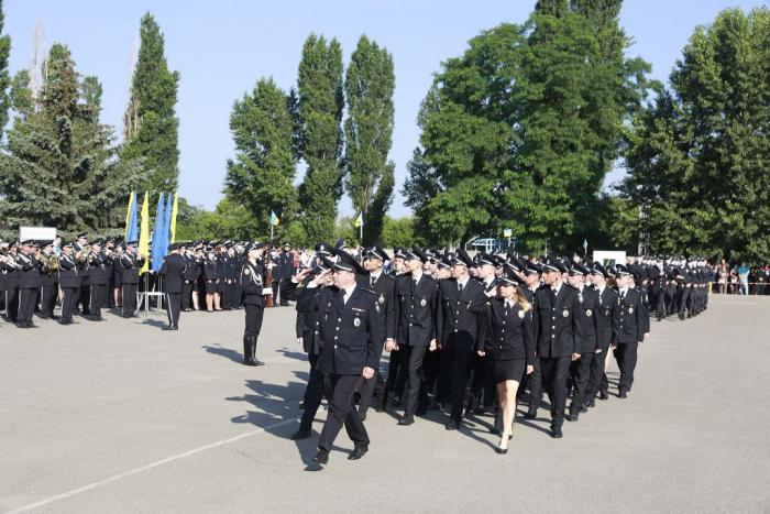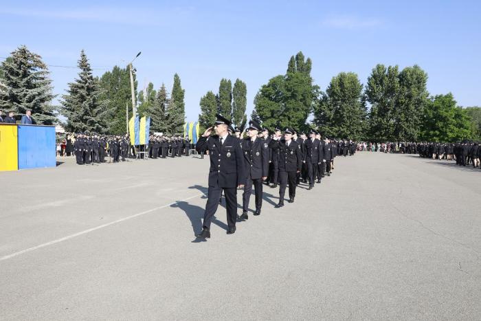 На завершення заходу прозвучала вокальна композиція «Погони» у виконанні представників художньої самодіяльності університету. Урочистим маршем молоді офіцери Національної поліції пройшли університетським плацом.