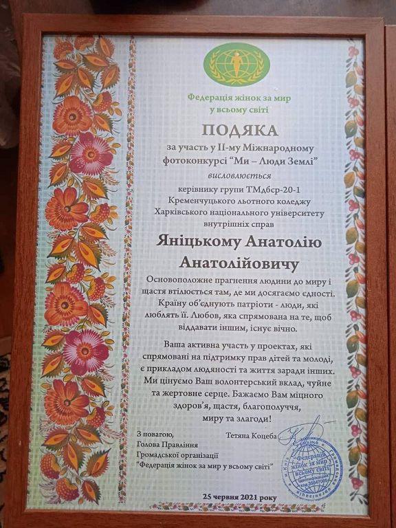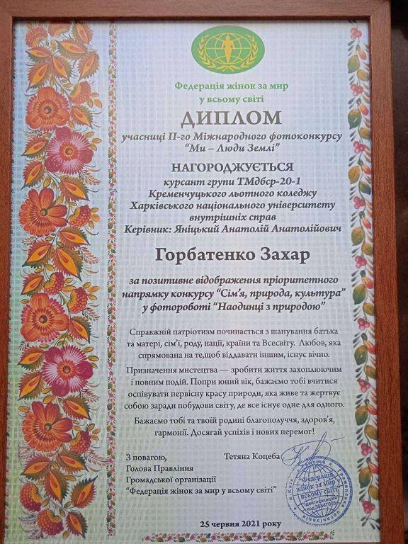 Курсанти Кременчуцького льотного коледжу Харківського національного університету внутрішніх справ взяли участь у ІІ Міжнародному фотоконкурсі «Ми – Люди Землі», що відбувся у Києві.