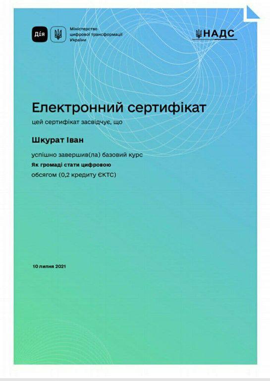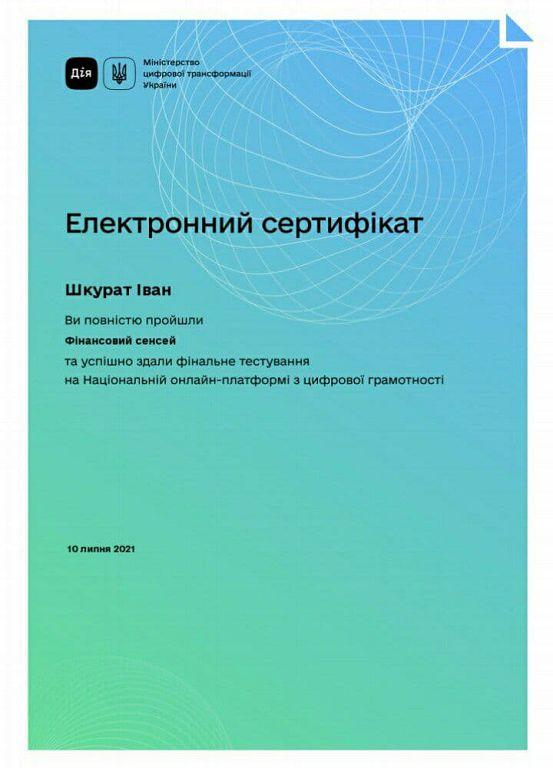 Курсант 1 курсу факультету № 1 Іван Шкурат пройшов курси «Фінансовий сенсей» та «Як громаді стати цифровою» на онлайн-платформі з цифрової грамотності «Дія.Цифрова освіта» від Міністерства цифрової трансформації України.