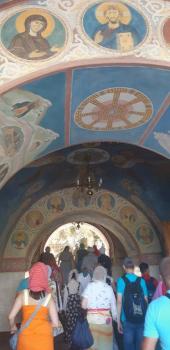У Національному природному парку «Святі гори» та Успенському чоловічому монастирі, розташованому на високому крейдяному правому березі Сіверського Дінця, екскурсанти оглянули комплекс крейдяних печер і наземних будівель ХVІІ–ХІХ століть: Свято-Успенський собор, Нікольський храм і трапезну, Олексіївську церкву (печери), Миколаївську церкву, підземну церкву Антонія і Феодосія тощо.