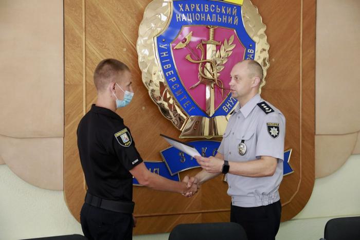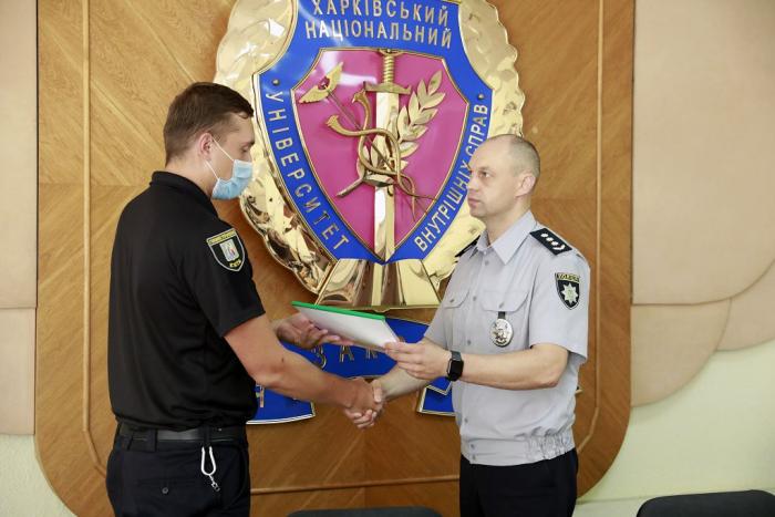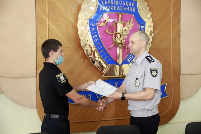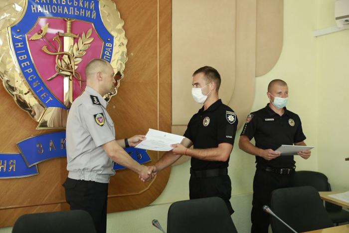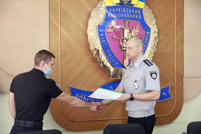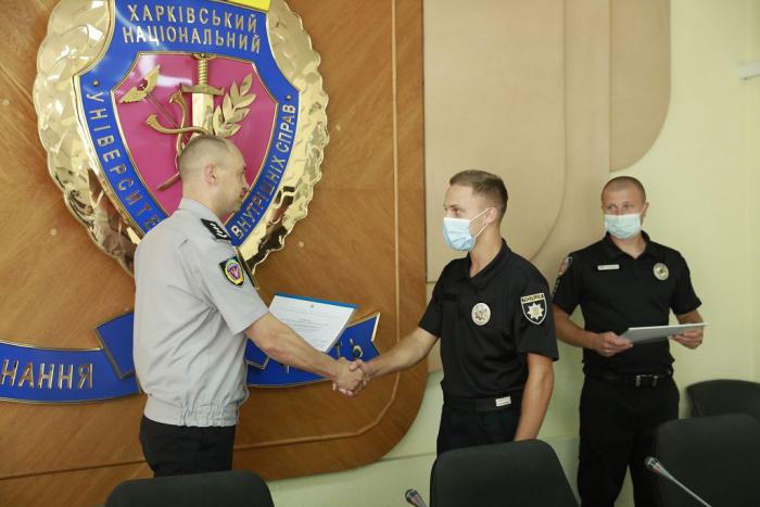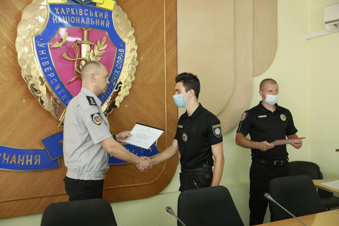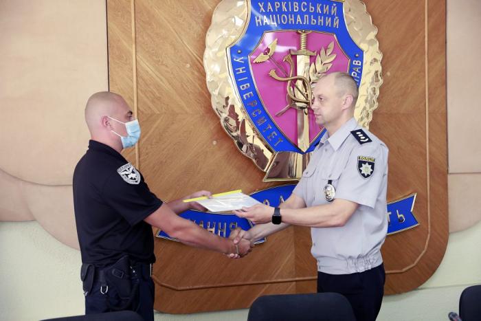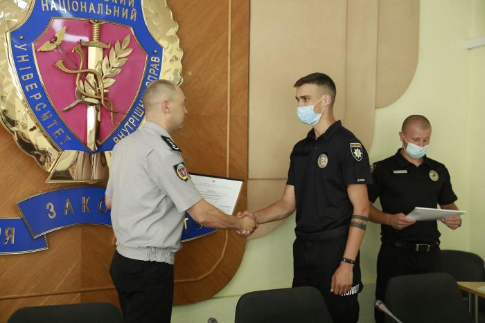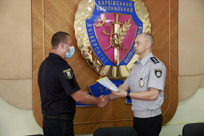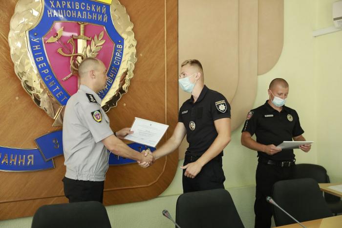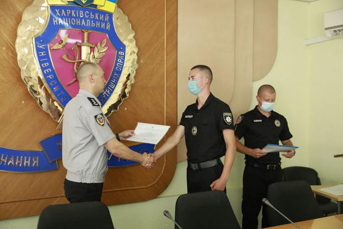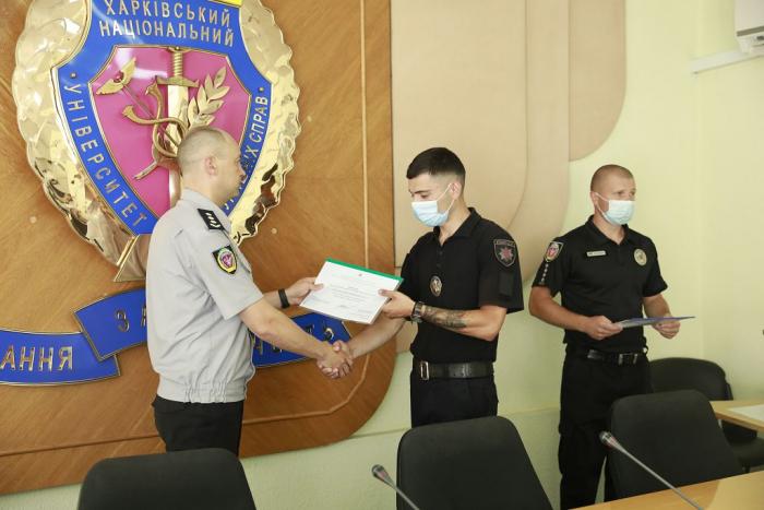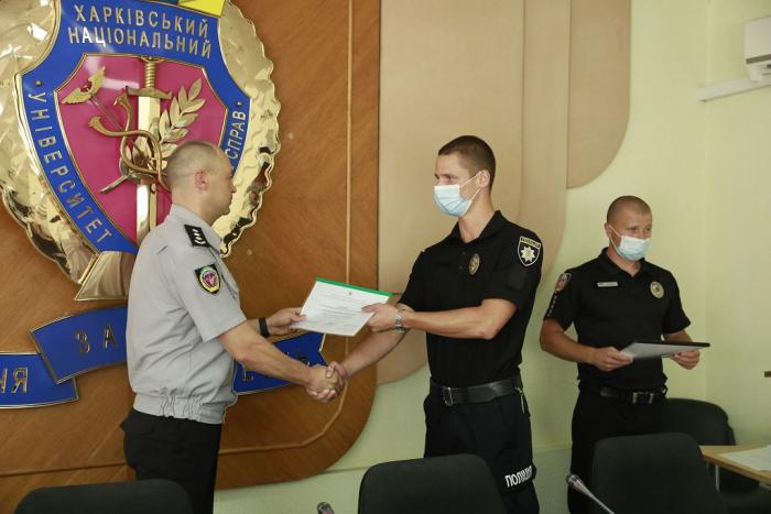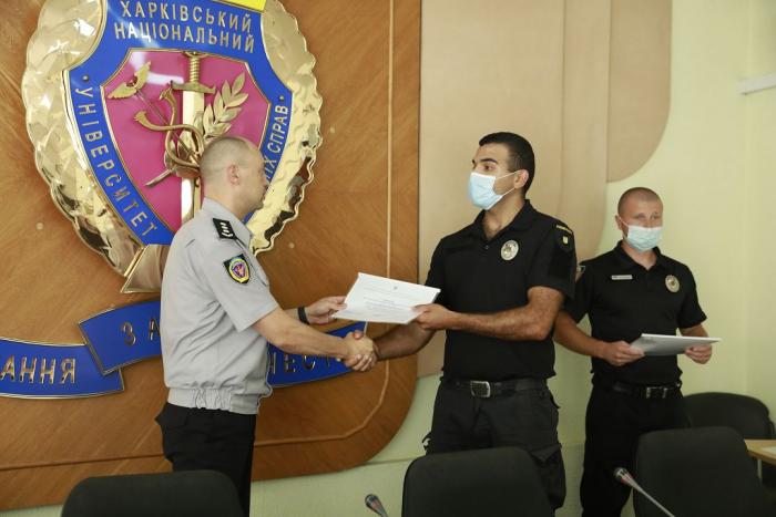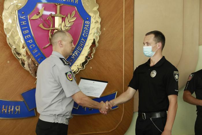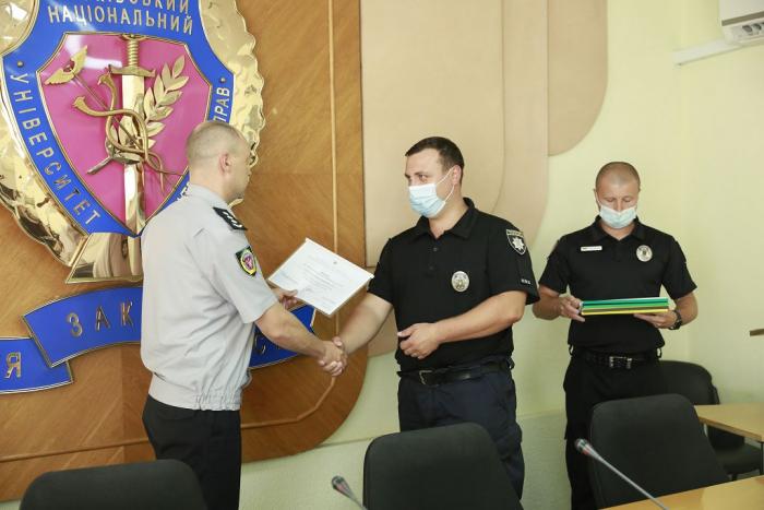 Від імені ректора університету генерала поліції третього рангу Валерія Сокуренка слухачів із закінченням навчання привітав перший проректор полковник поліції Дмитро Швець і вручив сертифікати.