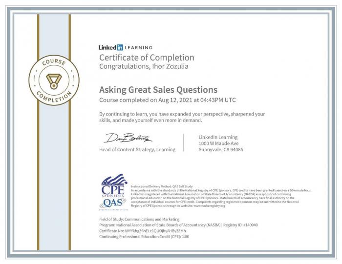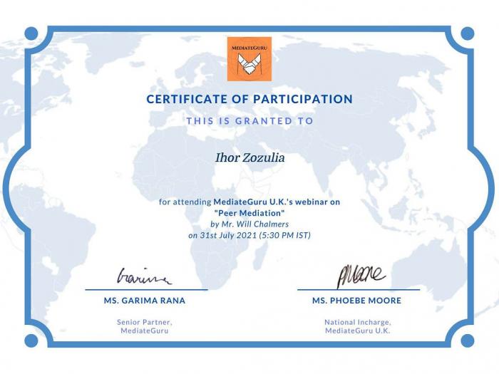 Професор кафедри правоохоронної діяльності та поліціїстики доктор юридичних наук Ігор Зозуля пройшов низку зарубіжних вебінарів для підвищення науково-педагогічної майстерності. Серед них: «Mediate Guru's 9th International Workshop», Mediate Guru U.K.'swebinaron «Peer Mediation»», Faculty Development Programme on «Chalenges and Opportunitiesin Cyber Security with Current Tools and Techniques: a Research Perspective» (CMR Engineering College, India), Course «Asking Great Sales Questions» (LinkedIn, USA).