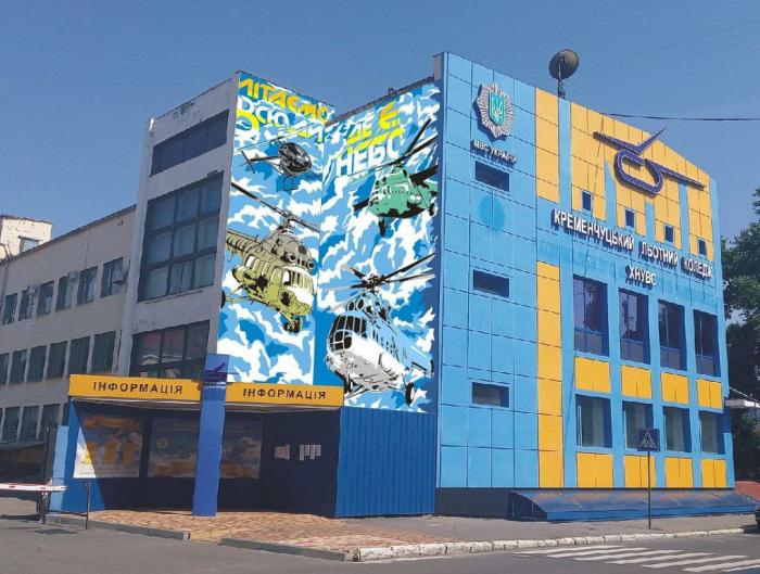 У Кременчуцькому льотному коледжі стартував проєкт зі створення муралу. Під керівництвом міського художника Сергія Брильова за участі курсантів, студентів та співробітників навчального закладу на частині головного фасаду адміністративної будівлі коледжу з’явиться художня композиція з вертолітної тематики.