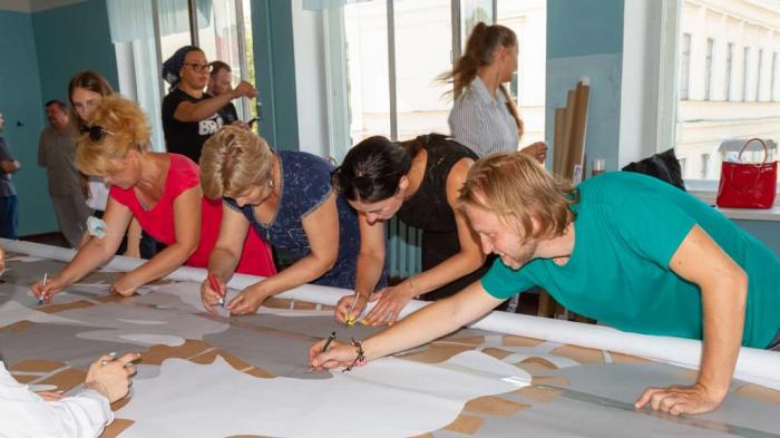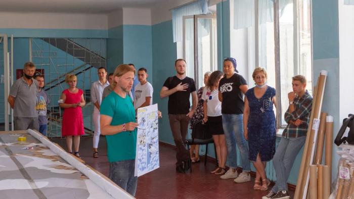 Перша творча зустріч зі створення художньої композиції пройшла продуктивно – працівники коледжу, курсанти та студенти під керівництвом головного розробника та втілювача ідеї художника Сергія Брильова почали роботу над вирізанням паперових макетів, які згодом будуть перенесені на стіни коледжу. До створення композиції можуть долучитися усі бажаючі.