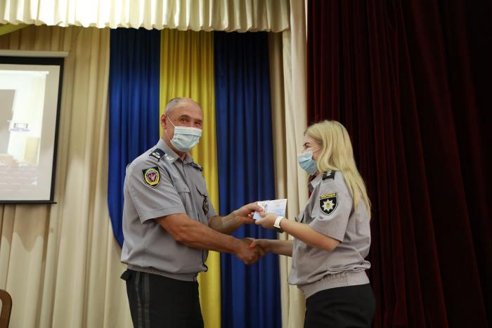 Присвоєно спеціальні звання поліції: «капітан поліції» – старшому лейтенанту поліції Олені Сашуріній, провідному фахівцю відділу організації служби; «старший лейтенант поліції» – лейтенанту поліції Денису Котляру, фахівцю факультету № 5.