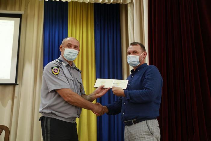 Грамоту МВС України отримав капітан поліції Сергій Абламський – начальник відділу організації наукової діяльності та захисту інтелектуальної власності.