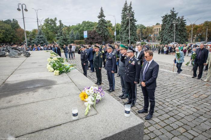 Згодом, на Солом'янській площі у Києві, керівництво Міністерства внутрішніх справ вшанувало пам'ять правоохоронців перед Меморіалом працівникам органів внутрішніх справ, які загинули при виконанні службових обов'язків.